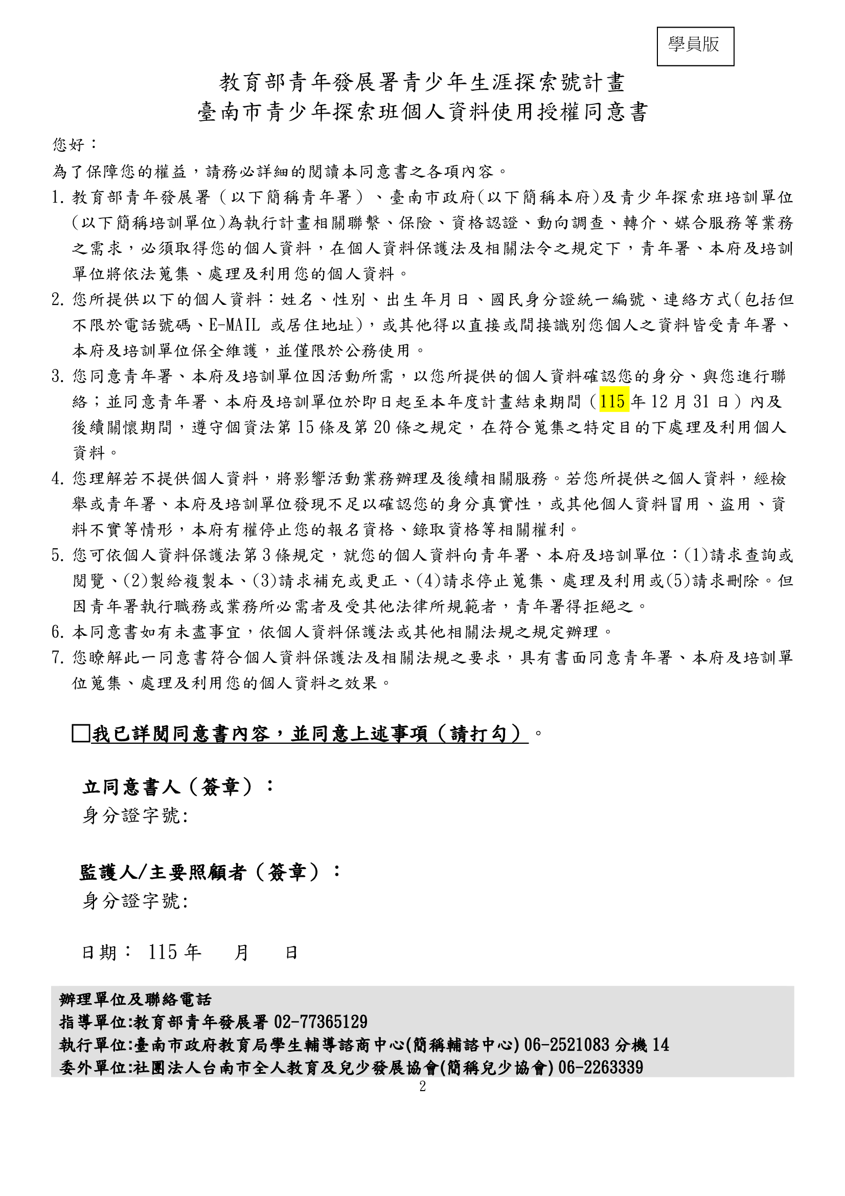 「115年青少年探索班」招生資料1份(如附件)