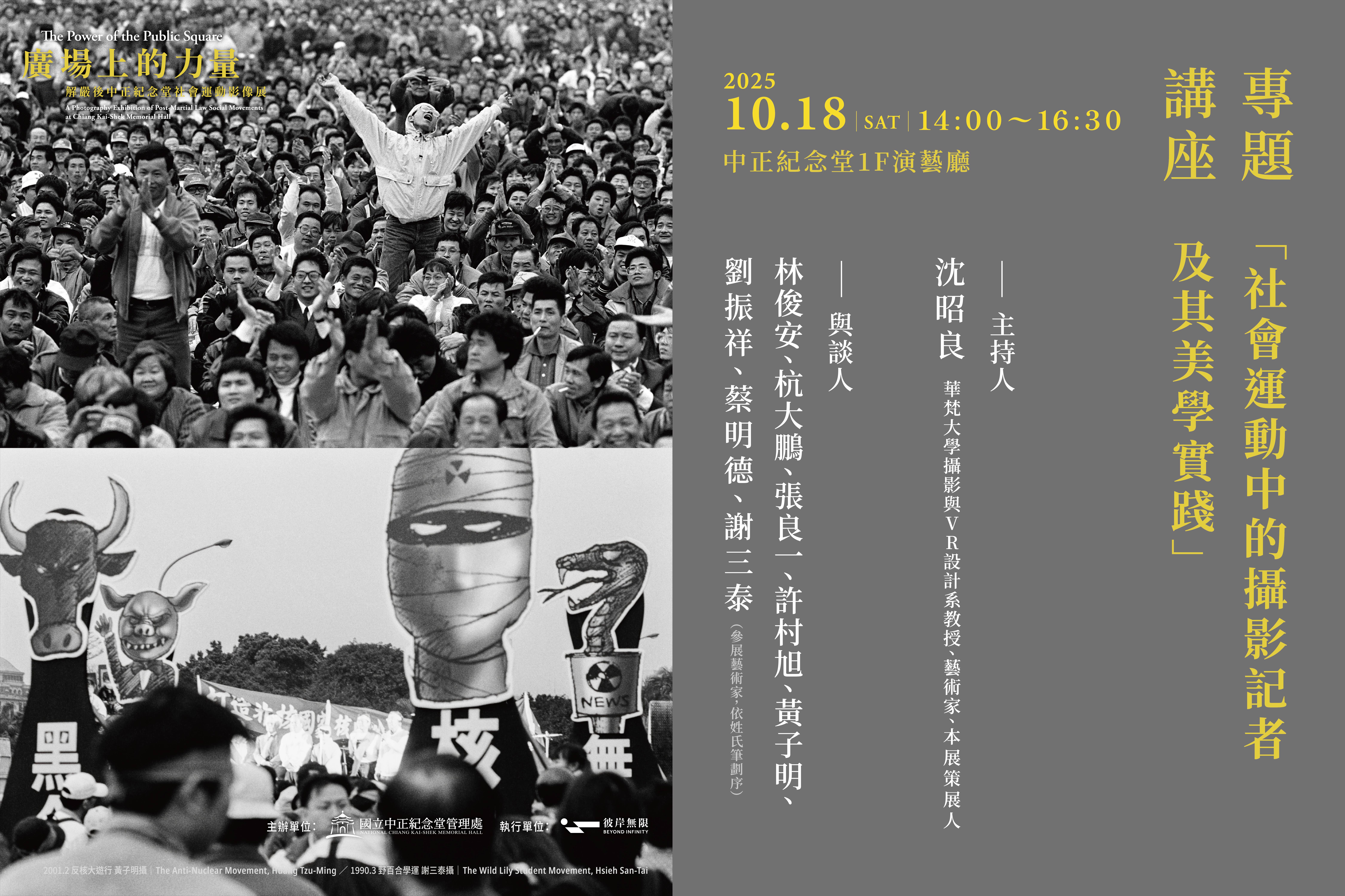 【轉知】中正紀念堂管理處辦理「社會運動中的攝影記者及其美學實踐」專題講座資訊